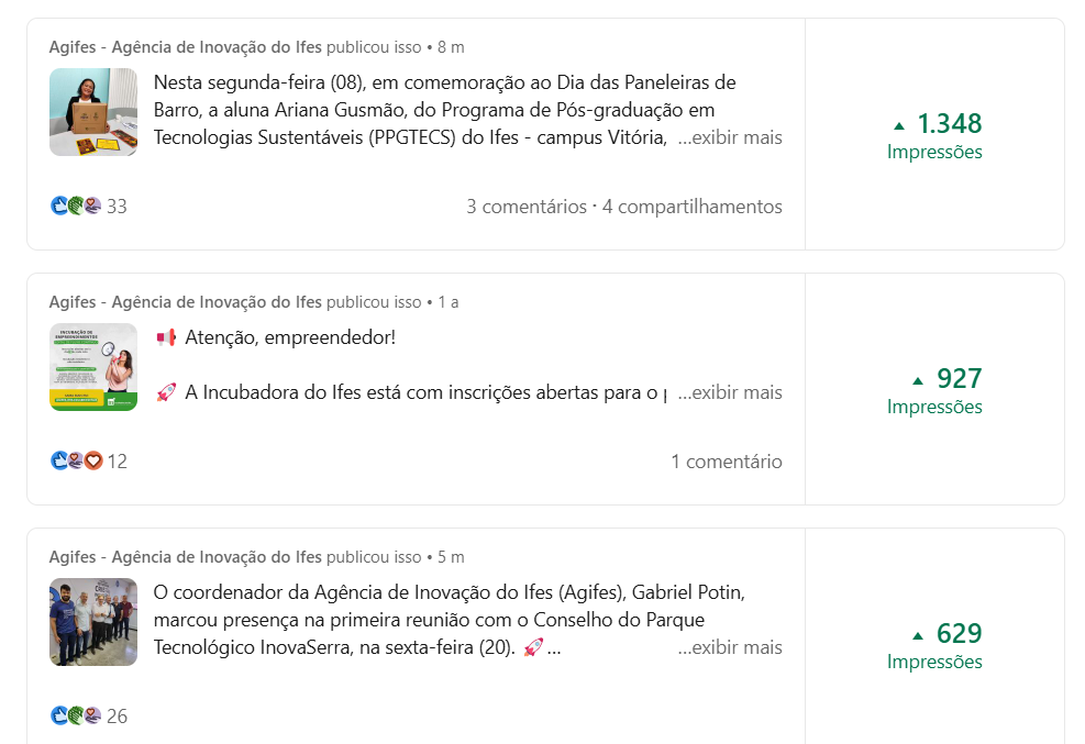 Em 2024, o Linkedin da Agifes produziu 63 publicações, com destaque para: