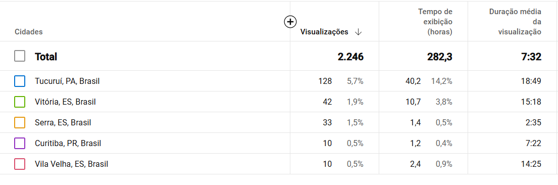 As cidades com maior audiência dos conteúdos publicado no YouTube, em 2024, foram: