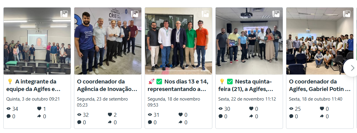 O LinkedIn se consolidou como um espaço de conexões estratégicas e divulgação de parcerias institucionais. A presença da Agifes nessa rede fortaleceu o relacionamento com empresas, pesquisadores e gestores de inovação.