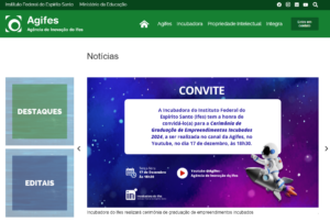 Ao longo de 2024, a equipe de comunicação da Agência de Inovação do Ifes – Agifes publicou 29 notícias no site oficial. A cobertura das ações, ao longo do ano, envolveu temas como o apoio ao empreendedorismo e a valorização da propriedade intelectual.