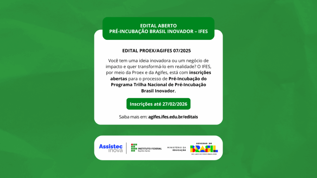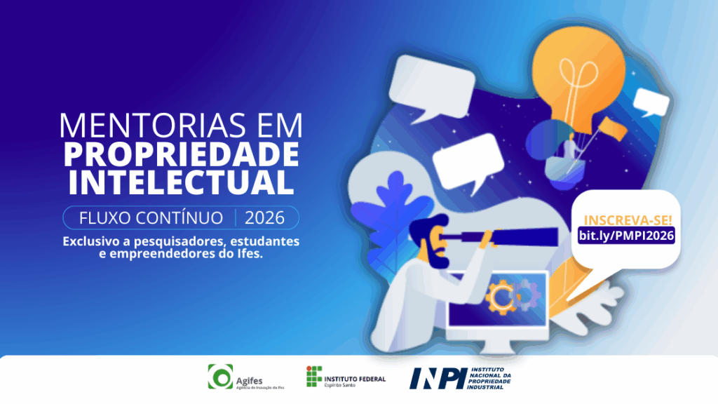 Agifes abre inscrições para mentorias em propriedade intelectual em parceria com o INPI Com inscrições gratuitas e em fluxo contínuo, o programa é voltado ao público interno do Ifes e…